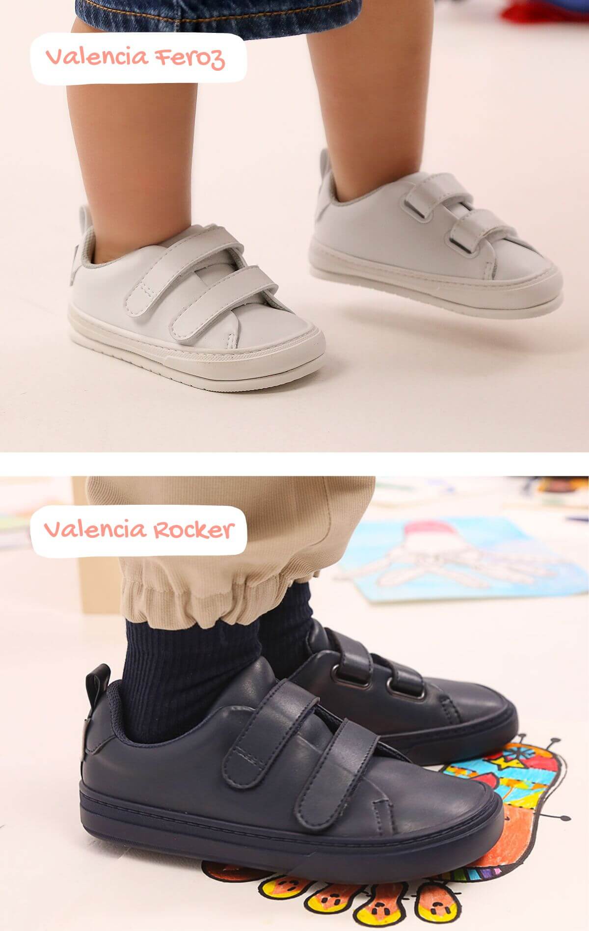 🦶 In children's shoes, the last is 3 mm wider at the metatarsals than Paterna and Moraira, giving the toes extra freedom even on long days.
